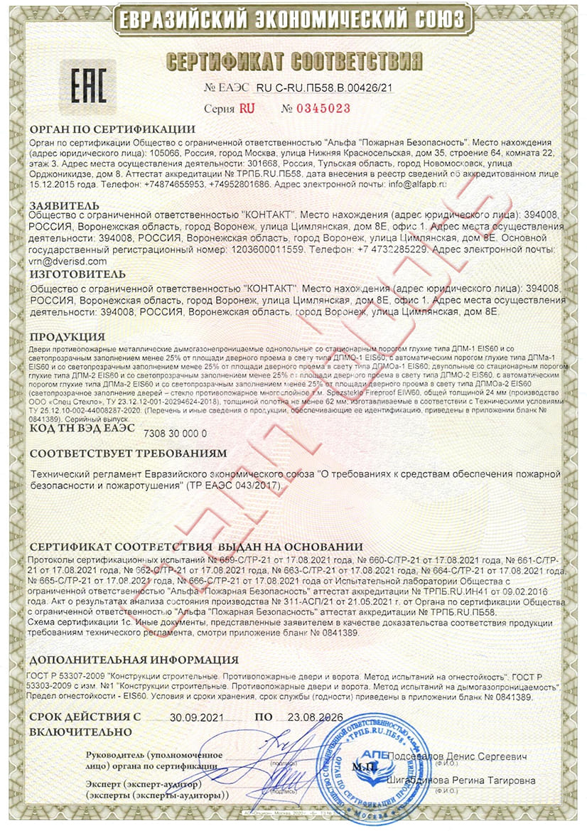 Двупольные противопожарные двери c автопорогом